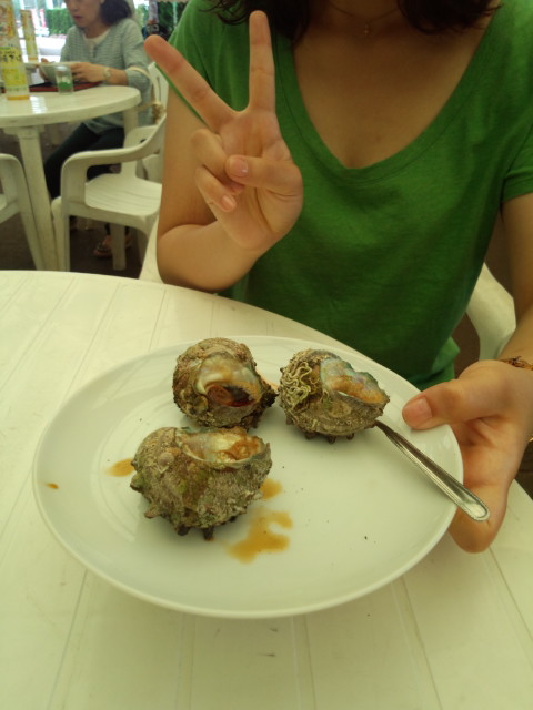 サザエのつぼ焼きも海を見ながら食べると美味しさが増すね!