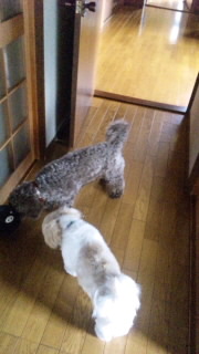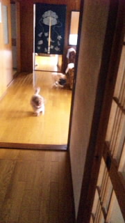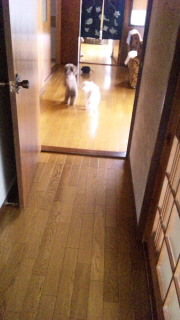 二匹は毎度のごとくおもちゃを取り合いダッシュ(-^〇^-)