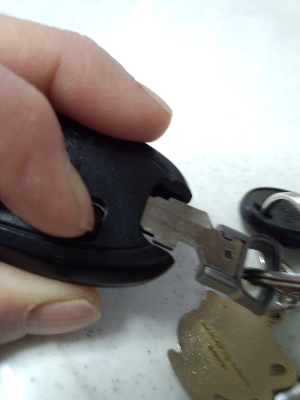 まず、リモコンに内蔵されてるキーを外し、マイナスドライバーでパカッと開けてみると電池出現!