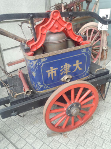 市役所前に明治から昭和初期にかけて使われていた消防ポンプが展示してありました