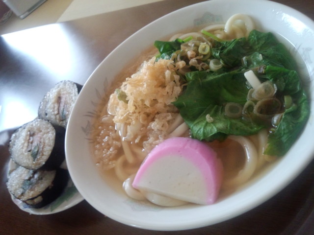 昨日の山菜を揚げた時に出来た天かすとみつばを使ってのおうどん…(^。^;)