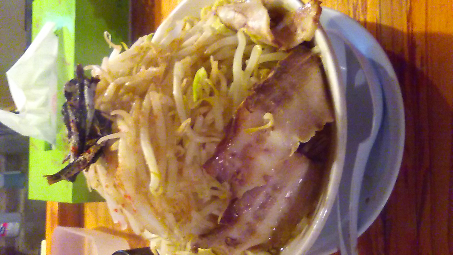 器に盛り付ける前にトッピングを尋ねられます。娘は背油少なめ野菜増し増し!わからん私は、同じで?