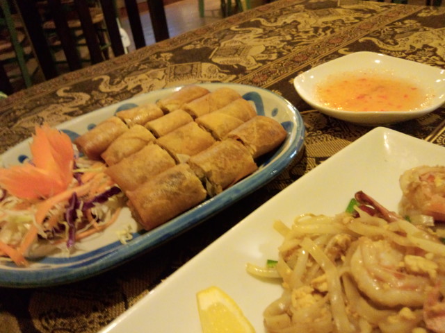 注文したのは、エビチャーハンにパッタイ、春巻き
