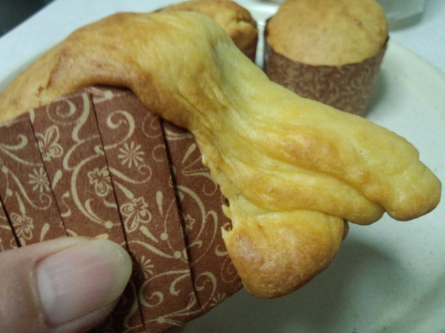 カップからはみ出た部分がやけに美味そうな焼き色…(≧∇≦)