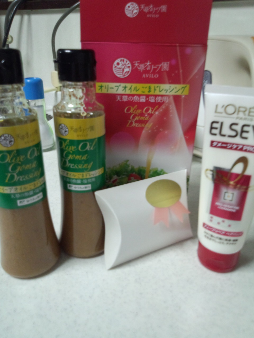 まず仕事の帰りにたまたま立ち寄ったドラッグストアでヘアパックを戴き、郵便局でドレッシングを戴き、大学から戻った娘にピアスを戴いた…(*^o^*)