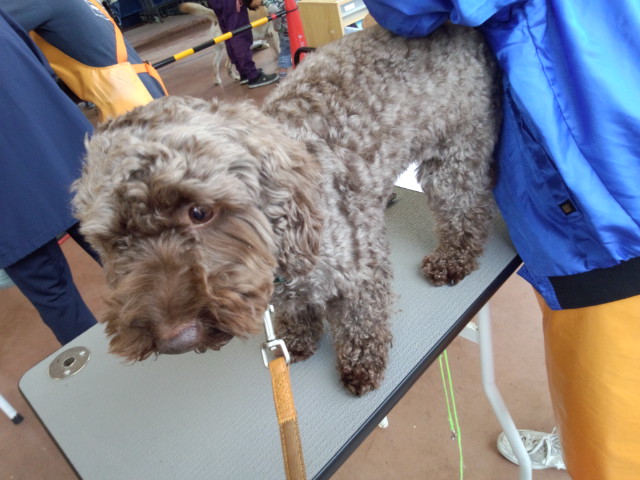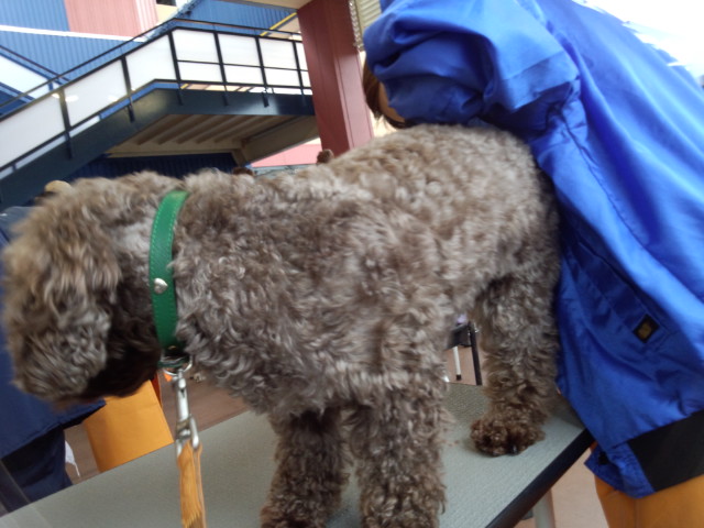 じっとトリマーのお姉さんにキレイキレイしてもらっていますが、ふと後ろを見ると、抑えこまれている小太郎が…(-"-;)トリマーさんもおばばも汗だくになっていました。