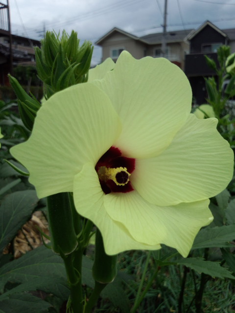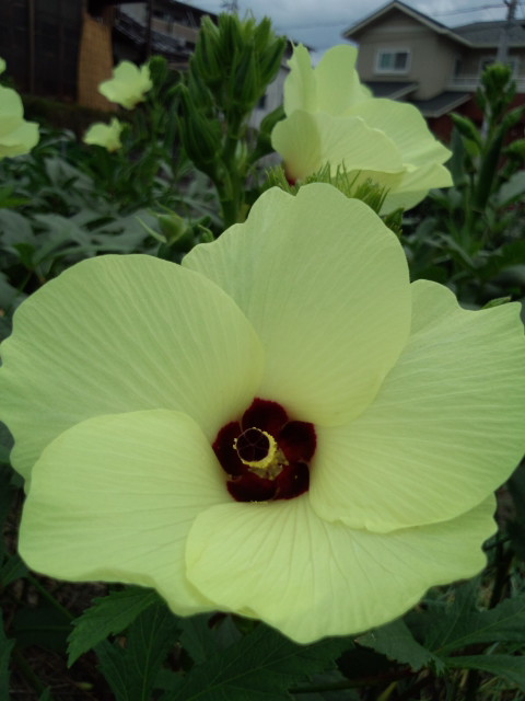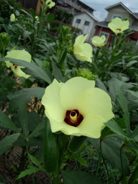 私が野菜の中で一番の花だと思っているオクラが咲き乱れております♪
