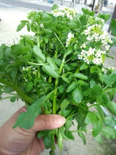 昨日お天気なので河原で自然のクレソンを摘みました。