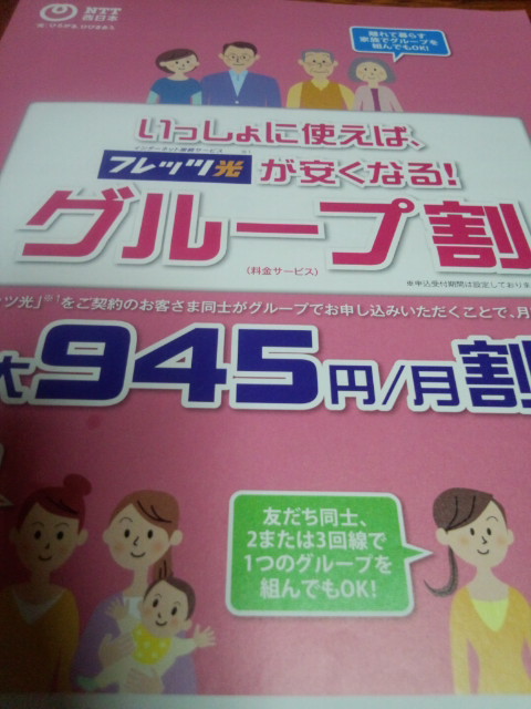2名以上3名まででグループを組んで申し込むと毎月のネット代が今より各々\300引きになります。