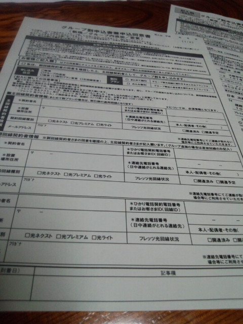 申し込み用紙、手元にあるしメールアドレス、回線ID、契約者名を教えてくれたら申し込んどきます。