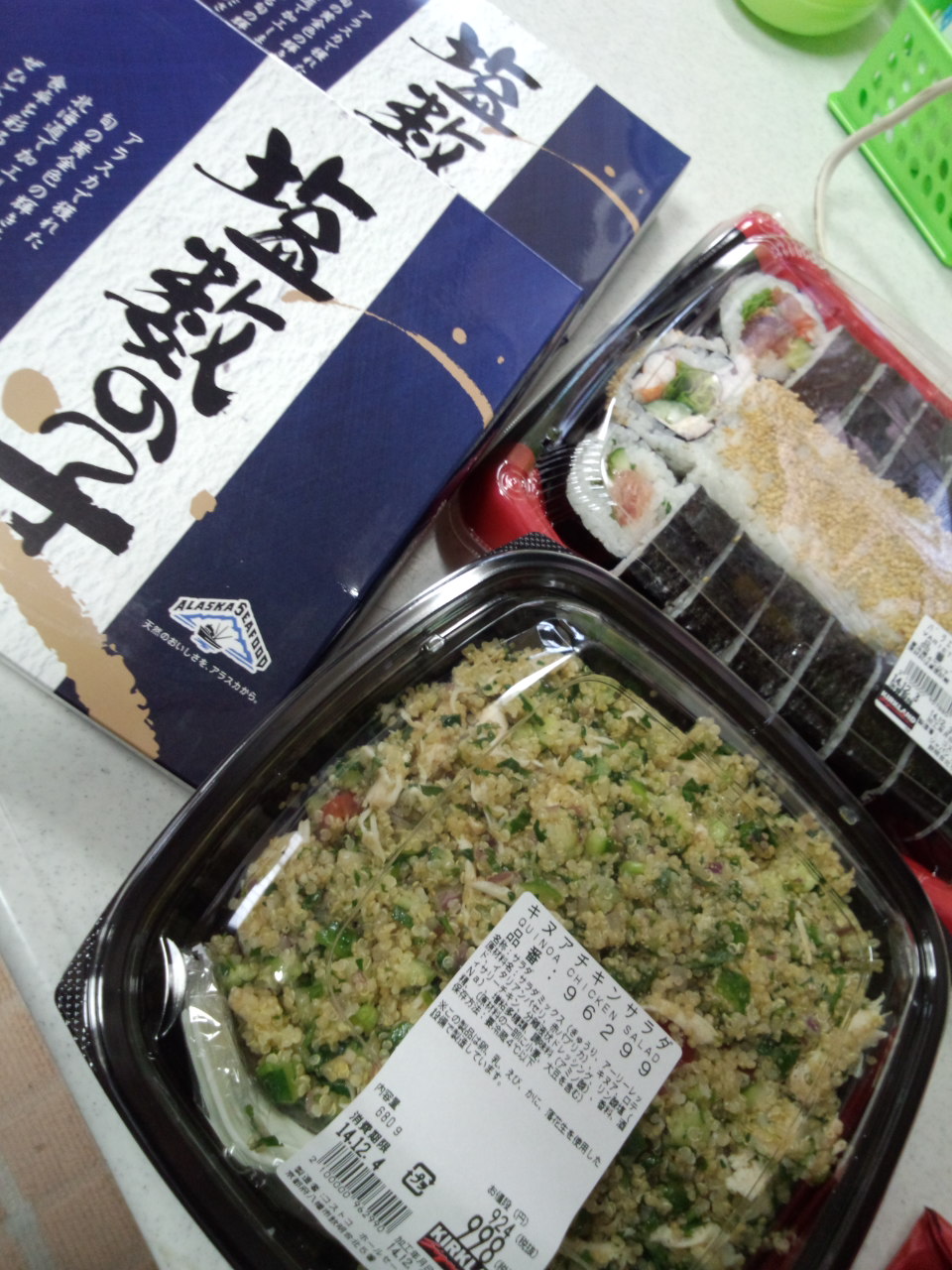 10等分して一個食べたらお腹にどすこい!です。さすがチーズ入ってるだけあります。冷凍できるんやろか?(笑)晩ご飯にと初めてお寿司を買ってみました。