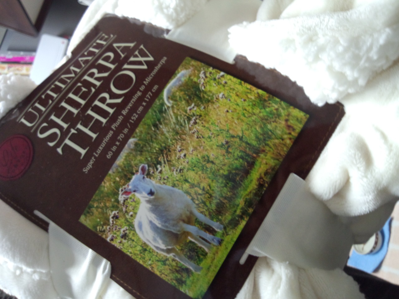 娘に買った羊の写真がついた膝掛けは、膝掛けというより毛布サイズで娘に大好評