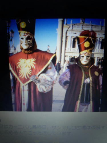 今日はカーニバル最終日、サンマルコ広場は仮装する人、それを写真に収める人でごった返しています。と…