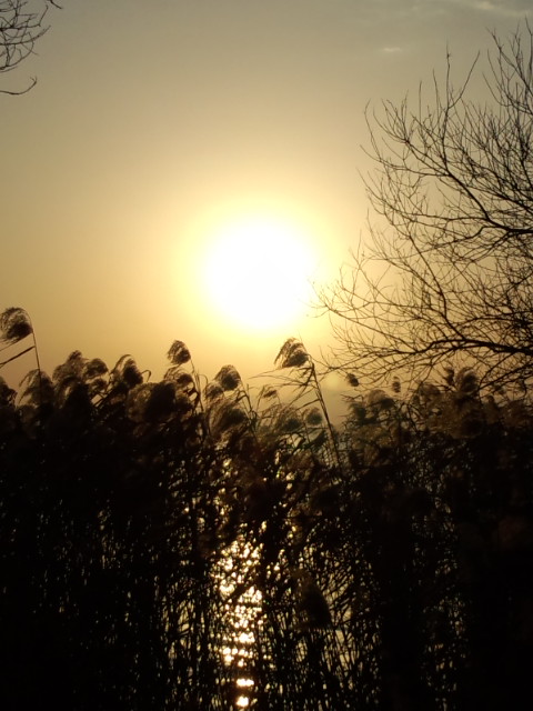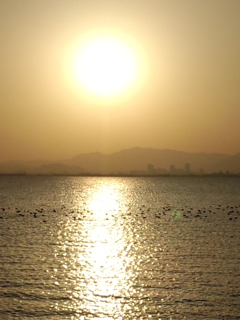 元旦は曇り空でご来光は拝めなかったのですが、今日はそこそこのお天気で家の近くの琵琶湖の畔へ…