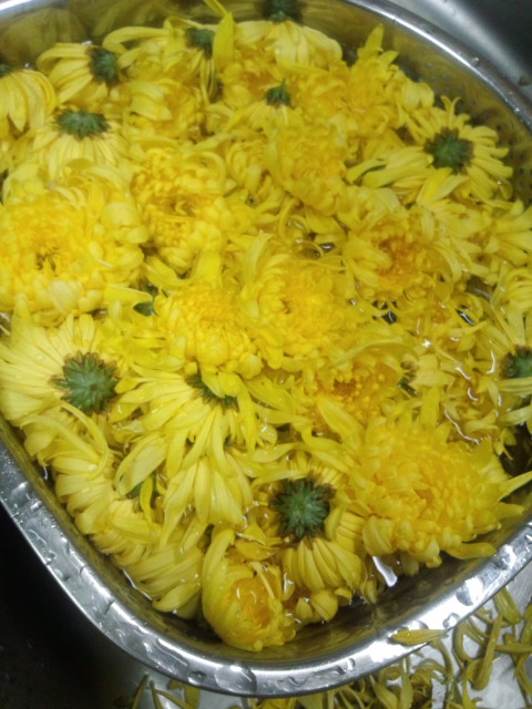 食用菊もそろそろ終わりを迎えますので、今回は保存用も摘みました!