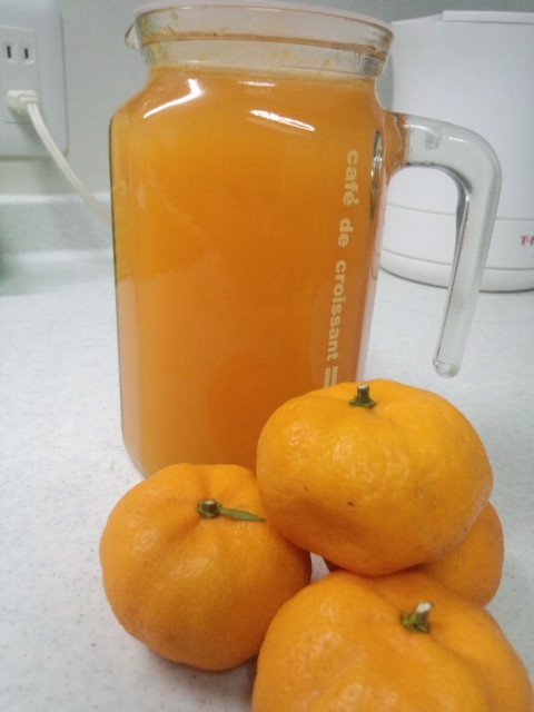 小さいみかん貰ったけど、食べにくいので絞ってたらあんまり鮮やかなオレンジ色だったのでね…