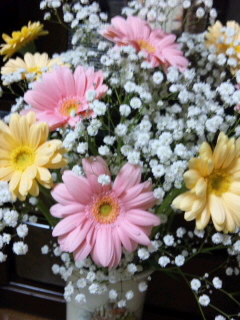 学校の帰りに可愛いガーベラとかすみ草の花束を買ってきてくれた(≧∇≦)