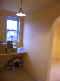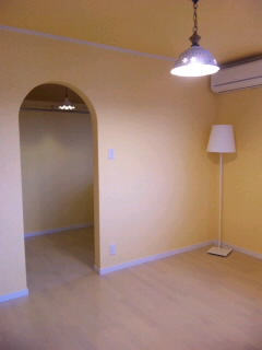 私はアジアンチックな雰囲気が好きだけど娘は北欧っぽい感じの部屋にしたいと黄色っぽいぬりかべ風…窓は白の上げ下げ窓にしてはばきやドアも白。床はナチュラルな色に…