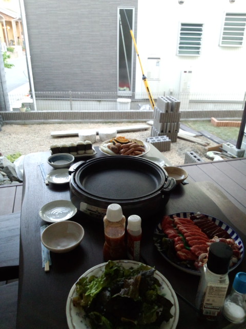 夕方から、まだ出来上がっていないお庭で焼き肉パーティー…