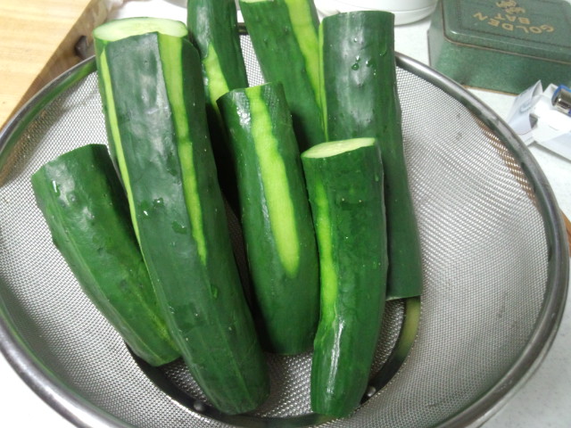 大量のキュウリを何とかしようと日曜日なのに朝から格闘してるおばちゃんなのです…