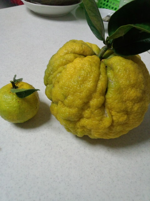畑には柚子の木が二本とオバケ柚子の木が一本あります。