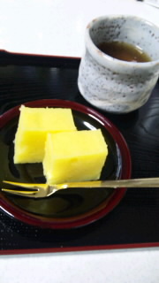 サツマイモは焼き、裏ごしして砂糖と寒天で芋ようかんに。
