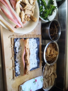 昨日ケンミンショーでも紹介された滋賀のスーパーハズイへ買い出しに行って、朝から巻き寿司を巻く。