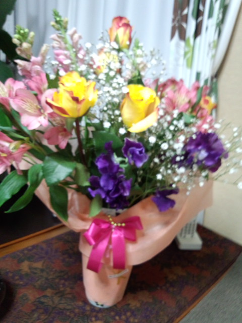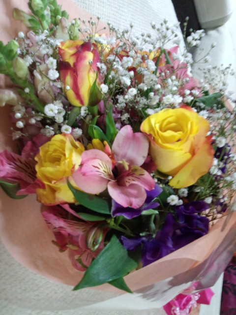 今年も綺麗な春らしい花束をプレゼントしてくれました
