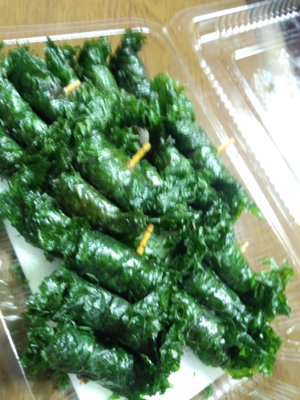 甘い味噌を大葉で巻いて揚げてあります