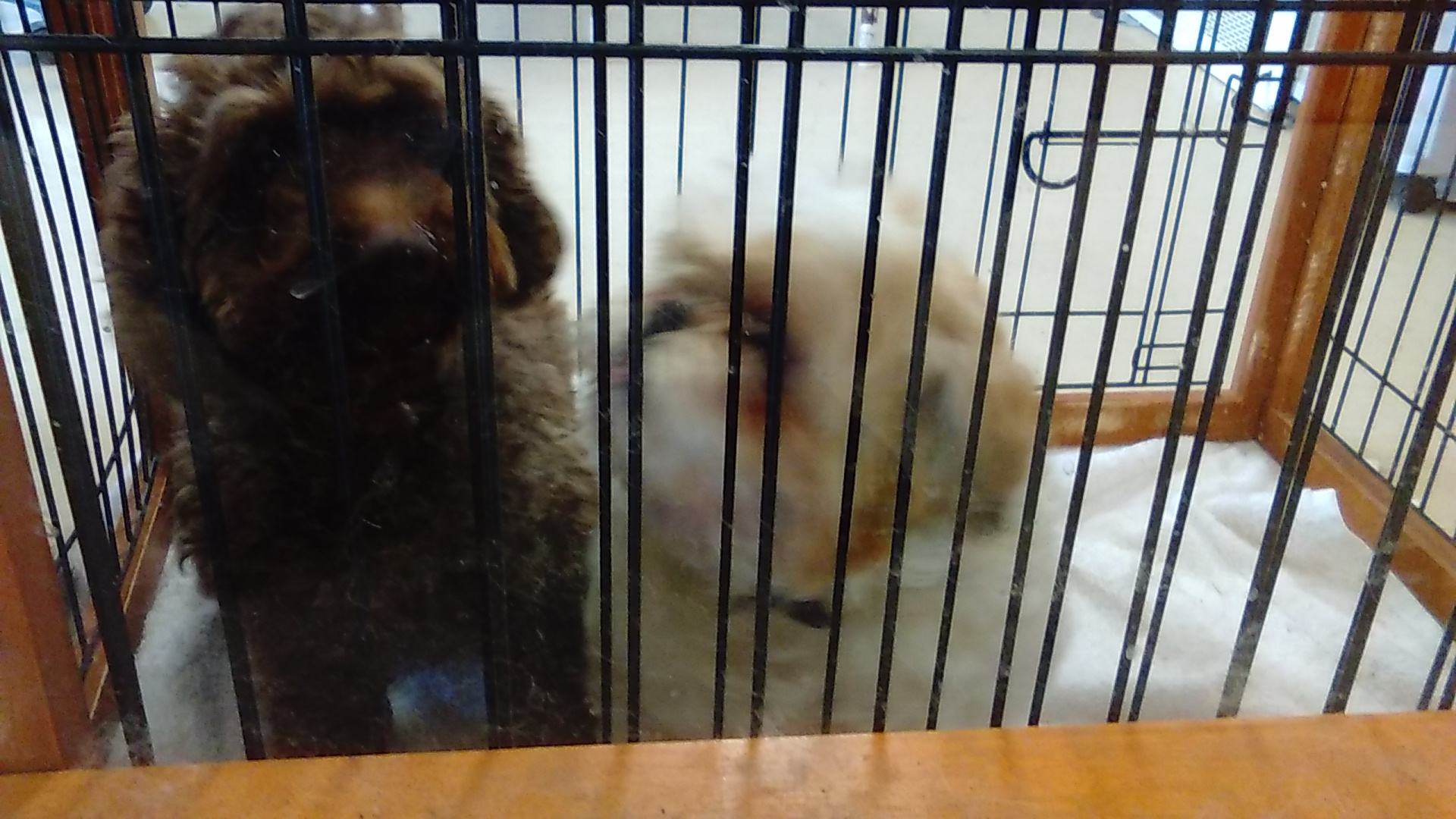 ティキと小太郎は、おとなしくトリマーさんにカットされていました