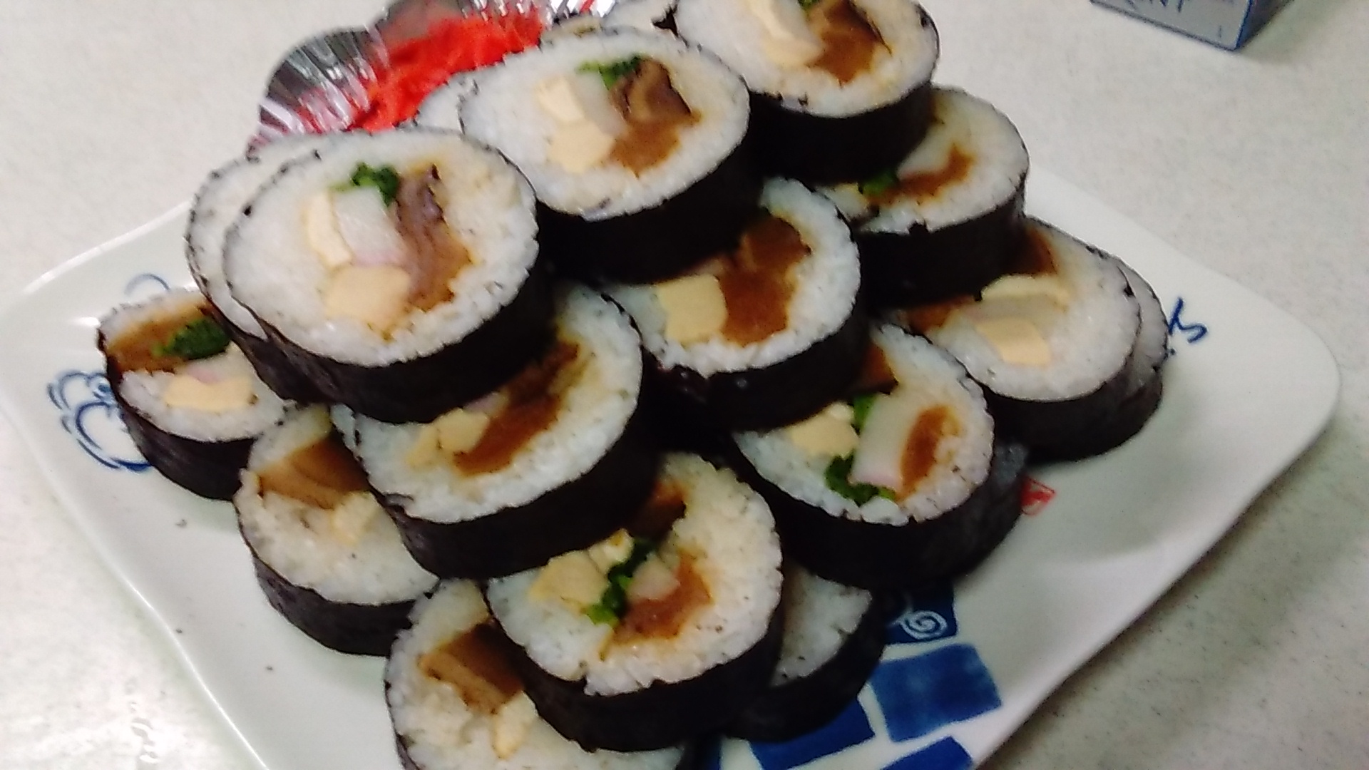 お父ちゃんの好きな巻き寿司とねぎとイカのぬたを作りました。
