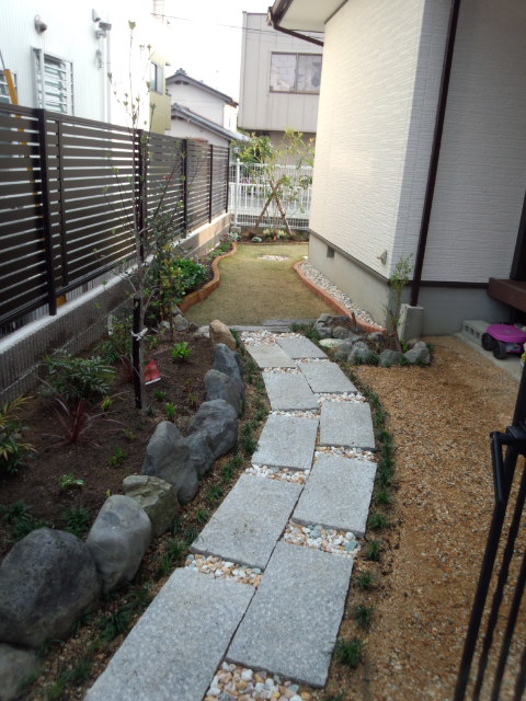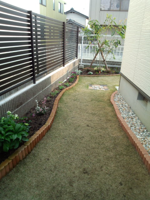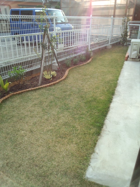 なんやかんやといいながら、気分にまかせて進めてきた庭づくりですが、今日ようやく植木を植えてなんとなく庭らしくなってきました。