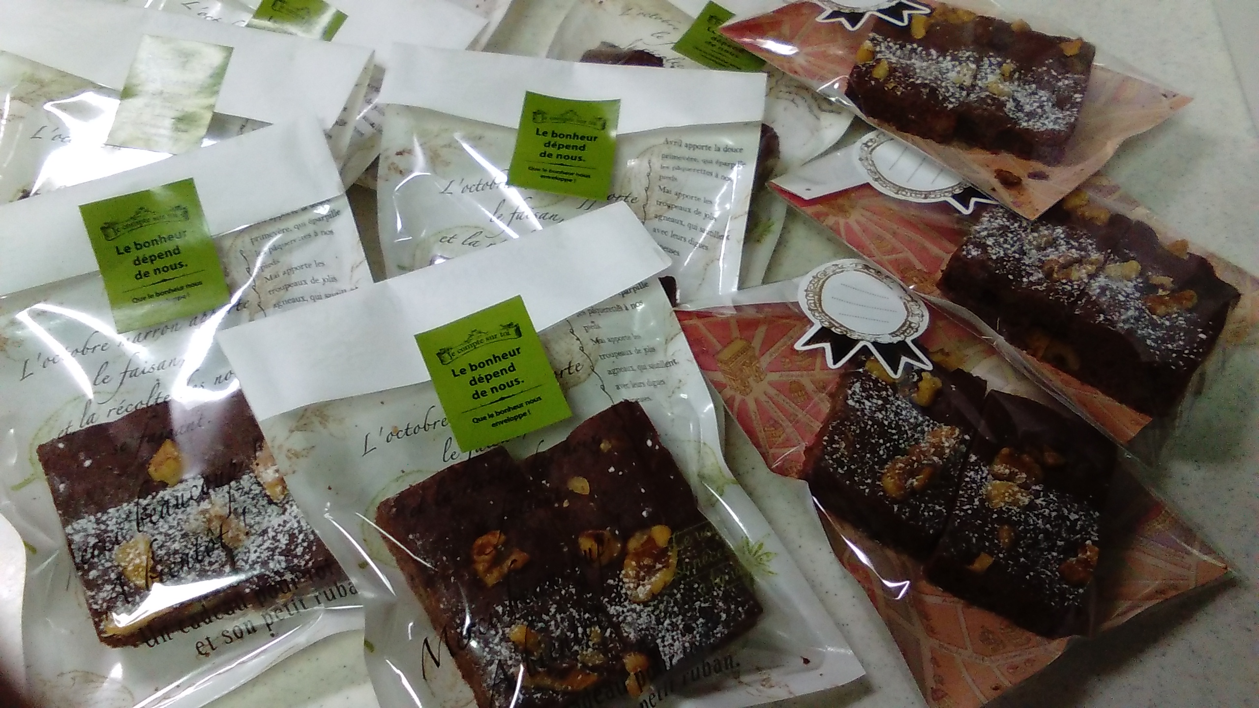 私も市販の袋チョコレートをたんまり買い込んで、ばらして配ったろ!と思ってもいたのですが、娘に負けてられんとブラウニーを焼いて職場でばらまいてきました