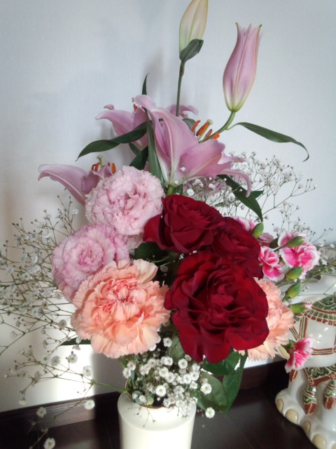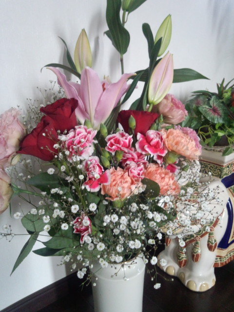 玄関に飾った花も蕾から満開になりました