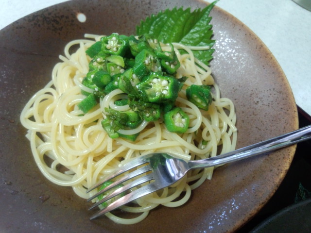 イカとおくらの冷製パスタ