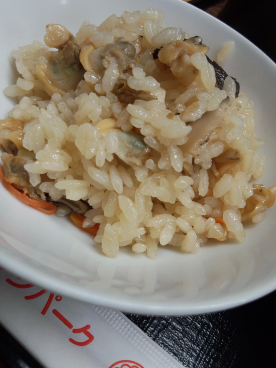 お昼はあさりご飯を釜で炊いたもの