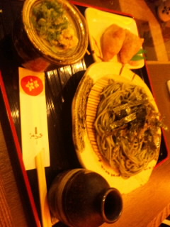 打ち立ての宇治茶のお抹茶を使った茶蕎麦とおいなりさん