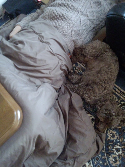 そんな親方様に、今朝留守番させられたティキがひっついて眠ってます(≧∇≦)